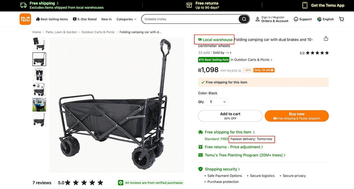根據(jù)Temu的官方說明,平臺(tái)上標(biāo)注“本地倉(cāng)庫(kù)”標(biāo)識(shí)的商品將由此新倉(cāng)庫(kù)發(fā)出。消費(fèi)者購(gòu)買此類商品后,預(yù)計(jì)可在兩天內(nèi)收貨,部分商品甚至可實(shí)現(xiàn)次日達(dá)。此項(xiàng)服務(wù)顯著改變了此前消費(fèi)者購(gòu)買Temu商品通常需要等待數(shù)周的國(guó)際物流時(shí)效。